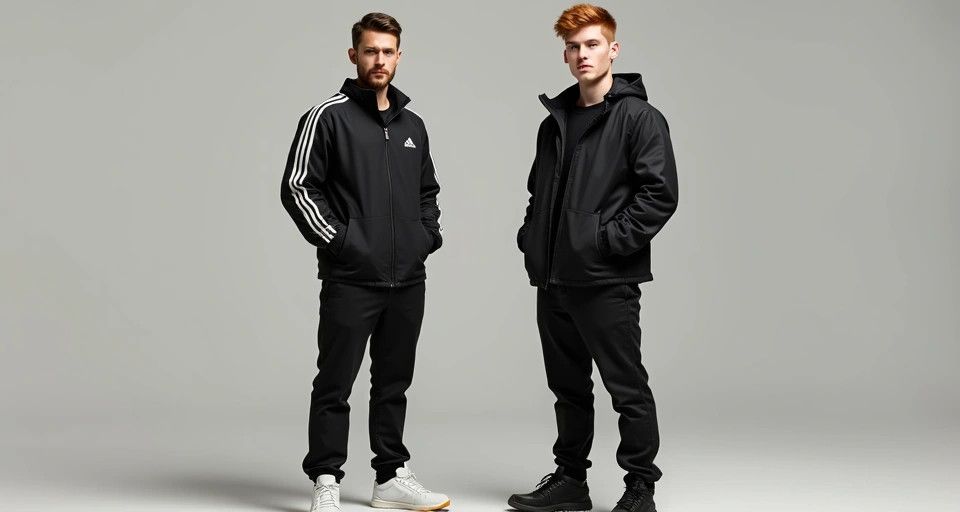 - Pierwszy mężczyzna: wiek około 35 lat, szczupła budowa ciała, krótkie brązowe włosy; ubrany w czarną kurtkę z logotypem marki Adidas, czarne spodnie i białe sportowe buty.