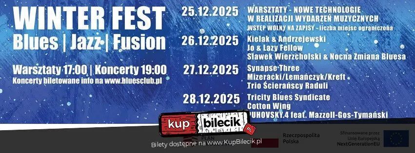 Tricity Blues Syndicate (PL) to mocne, bezkompromisowe bluesowe uderzenie z Trójmiasta - zespół, który łączy klasyczny, surowy charakter bluesa z rockową dynamiką i sceniczną pewnością. Na ich koncertach nie ma miejsca na półśrodki. Jest energia, szczerość i puls, który trafia prosto do serca każdego, kto kocha bluesowe brzmienie oparte na emocji. Twórczość grupy wyróżnia się wyrazistym, "miejskim" tonem - pełnym drive"u, przesterów i harmonijkowych dialogów. To muzyka, która idzie do przodu, ale z pełnym szacunkiem dla tradycji gatunku. Zespół tworzą doświadczeni muzycy znani z trójmiejskiej sceny: